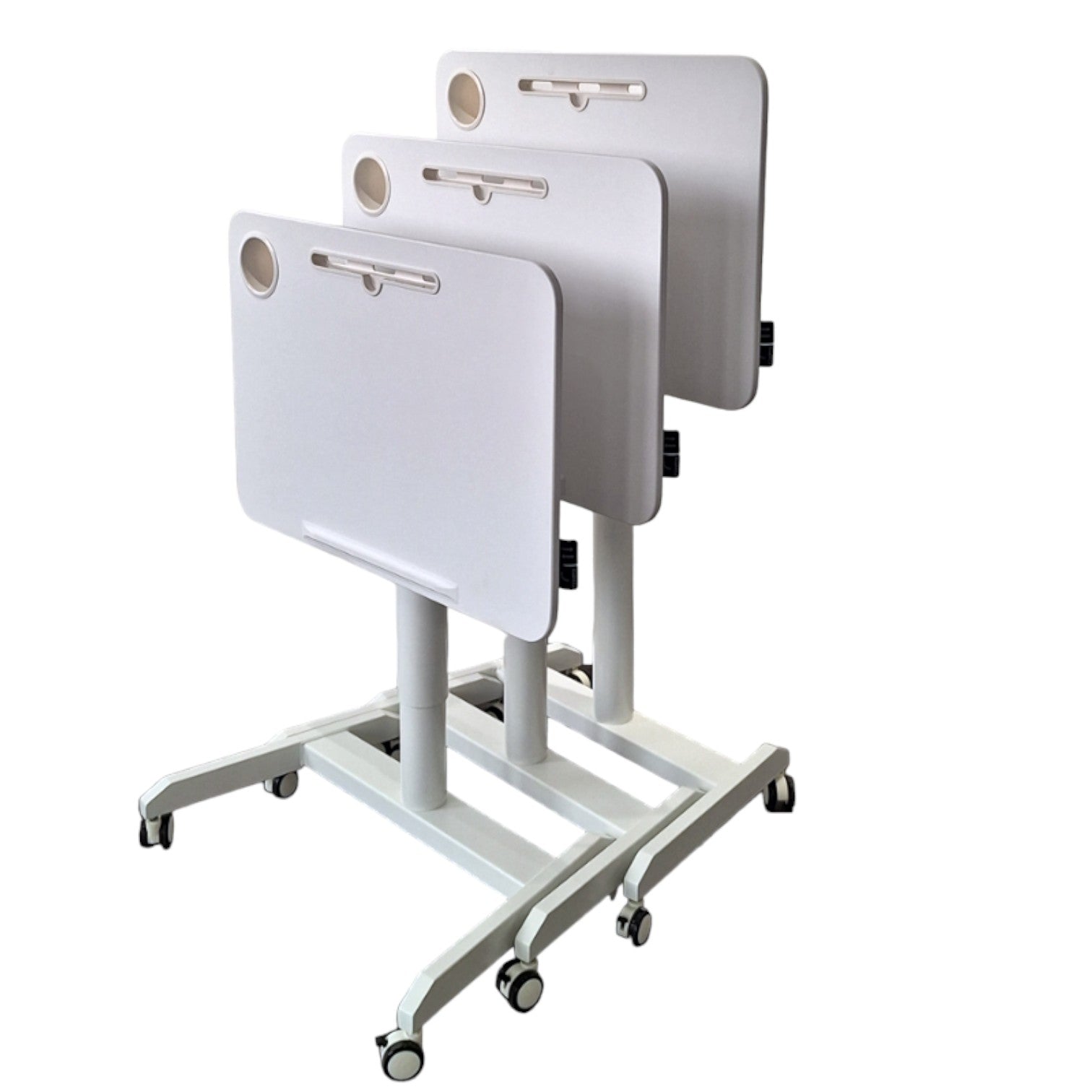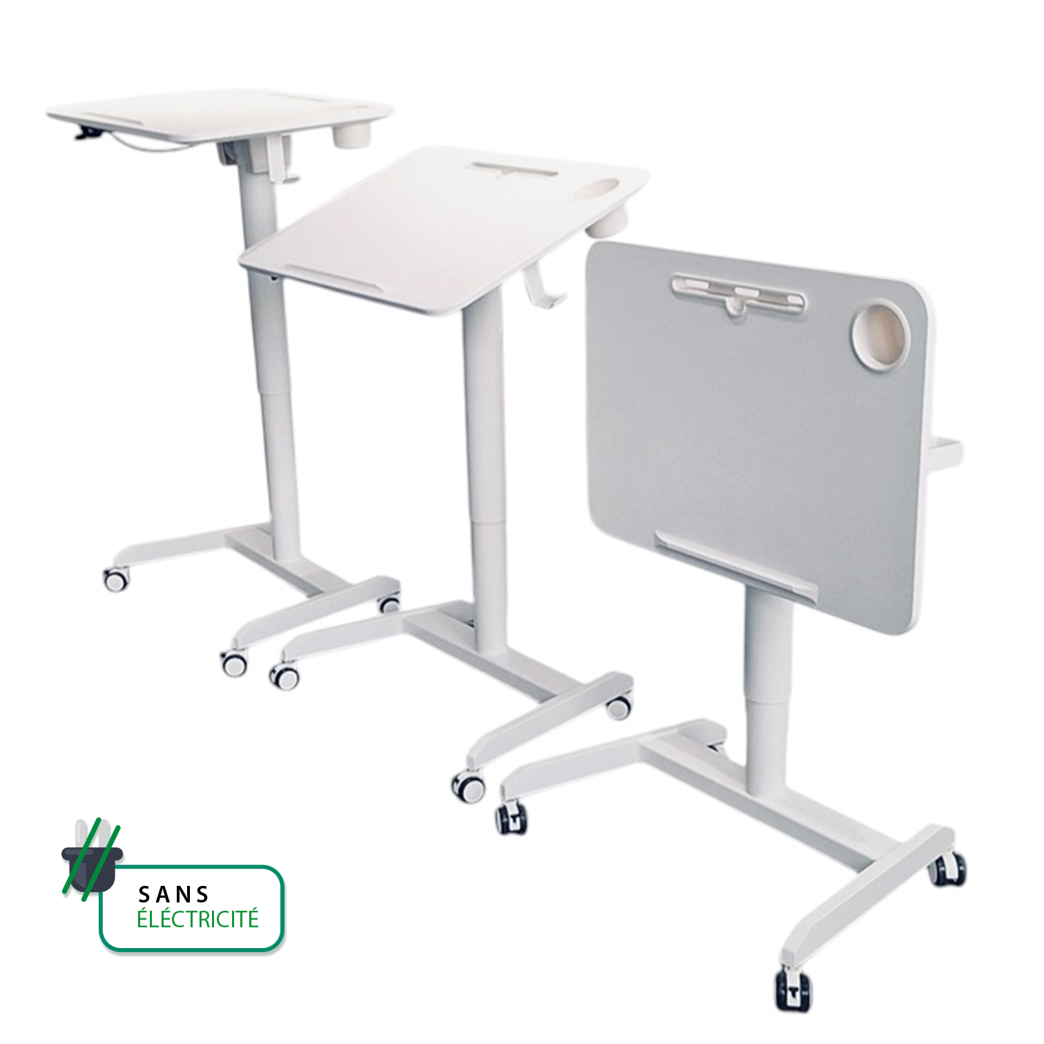 - Plateau ajustable : Changez facilement la position du plateau, que ce soit à plat, incliné ou relevé, pour s’adapter aux différentes tâches et postures. Idéale pour alterner entre travail assis et debout.