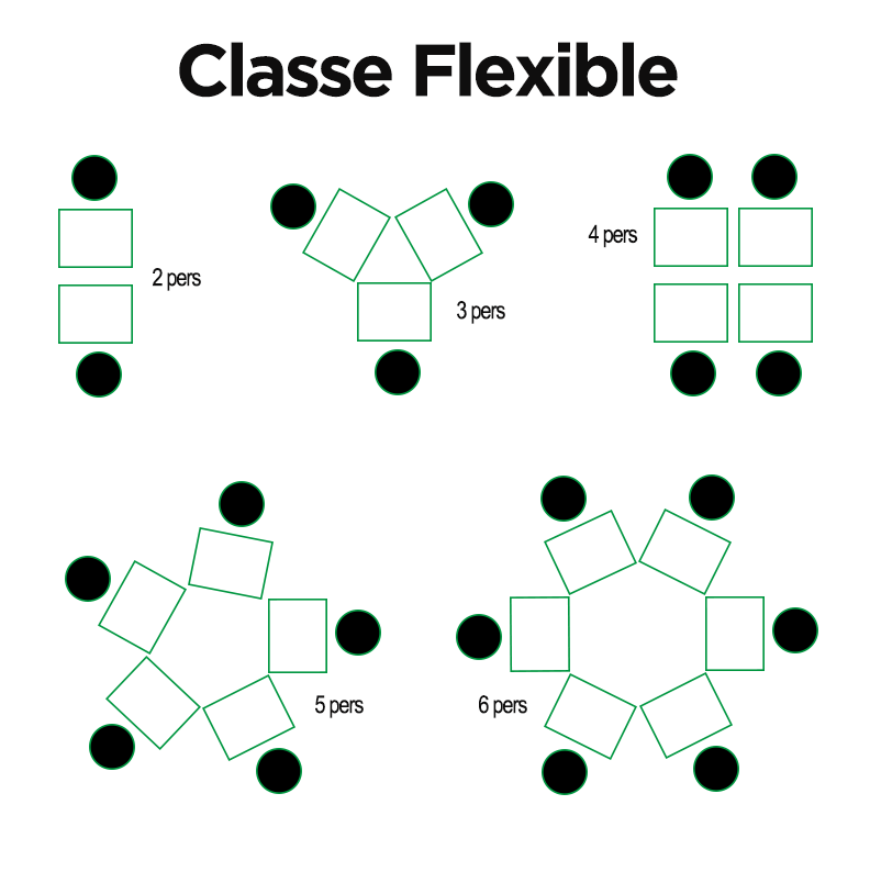 La table Flip est la solution parfaite pour les environnements dynamiques et flexibles, où l’adaptabilité et l’ergonomie sont essentielles. Conçue pour répondre aux besoins des espaces éducatifs modernes, elle offre une variété de configurations qui favorisent une expérience d’apprentissage interactive et engageante.
