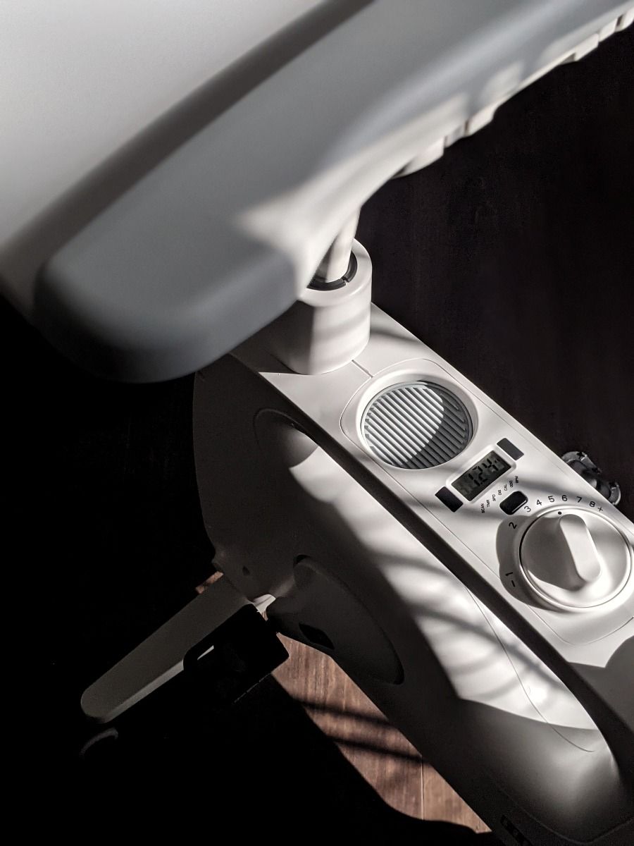 J'ai été très agréablement surpris par la conception du vélo. Tout d'abord les roues sont très pratiques. Mais surtout le réglage de la tablette en profondeur. Je n'y avait pas pensé mais il est très difficile de s'asseoir ou de s'extraire su siège sans cette fonctionnalité. Et cerise sur le gateau on peut aussi s'en servir de bureau debout en se positionnant devant le vélo.