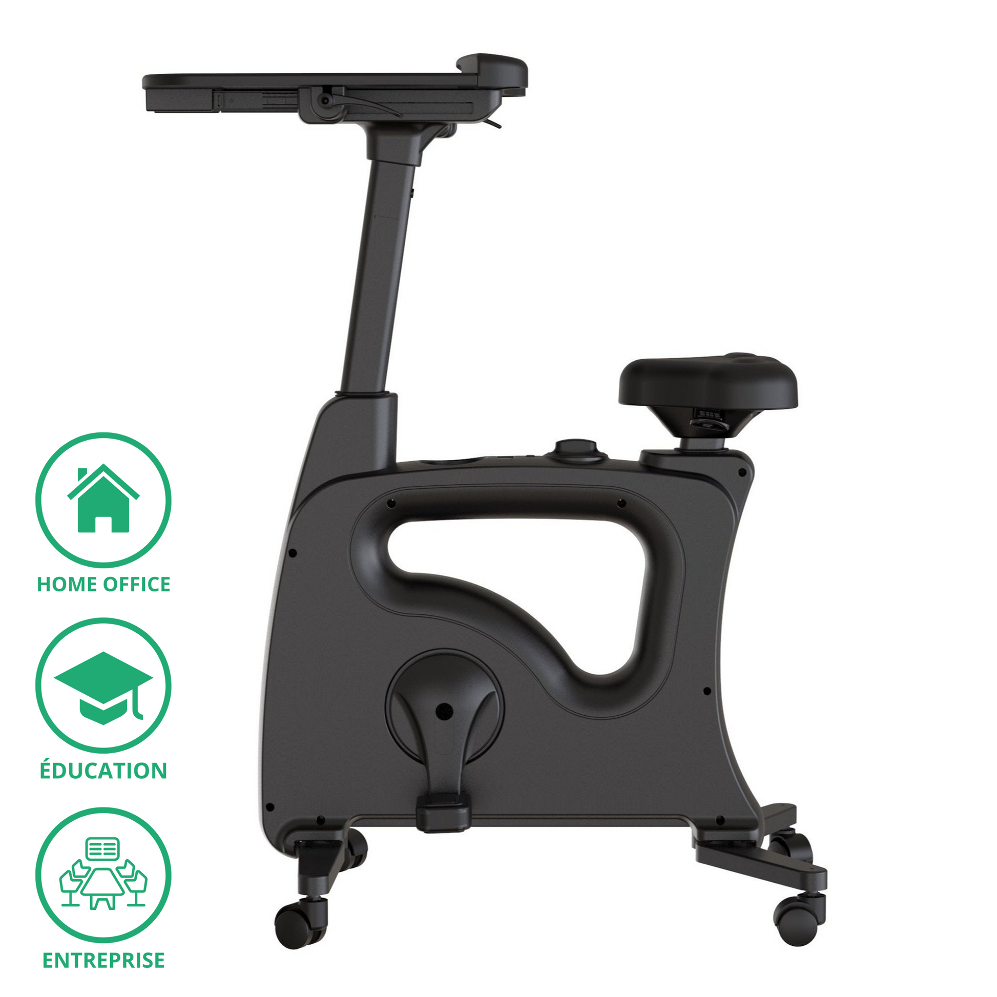 Les roulettes pivotent à 360° ce qui rend le vélo bureau maniable et facile à déplacer. Pour plus de sécurité les roulettes se bloquent lors de son utilisation.