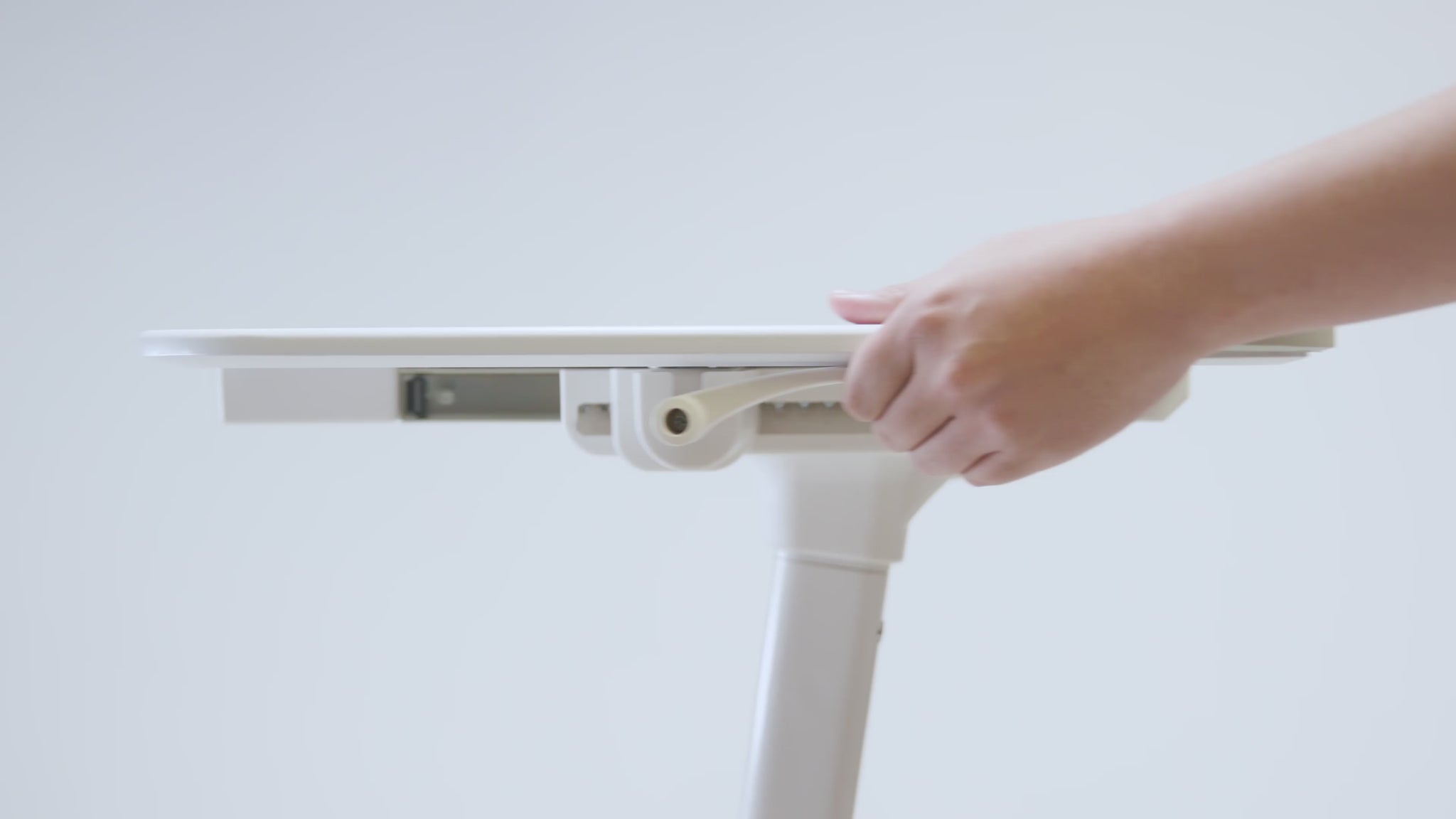 Posé sur un vérin, la tablette est amovible. En actionnant une poignée, elle se règle en profondeur et en hauteur pour un confort optimum.